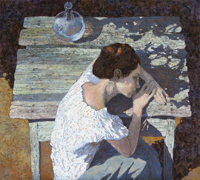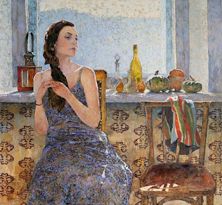 συλλογισμένη όλη τήν ήμερα, σά νά ονειρευόταν καί νά περίμενε μόνο νά ρθεί το