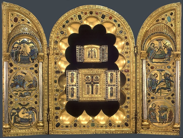 Η σταυροθήκη του Stavelot. Δημιουργήθηκε, για να στεγάσει τα δύο εσωτερικά βυζαντινά τρίπτυχα,