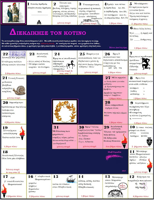 - Το παιχνίδι αφορά τις ενότητες 1η -11η με μια μικρή υπέρβαση στο Συντακτικό. Το τμήμα χωρίζεται σε ομάδες.