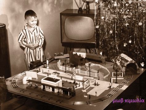 παιδιά μπροστά στη βιτρίνα του καταστήματος κάνουν όνειρα  πώς θα αποκτήσουν το ποθητό δώρο, το «σιδερόδρομο»,