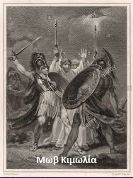 Στην Εικόνα απεικονίζεται ο Αίας. Βάλτε λόγια στην εικόνα: Προσθέστε ένα συννεφάκι και γράψτε τις σκέψεις του ήρωα, αφού έχασε τα τιμητικά όπλα του Αχιλλέα
