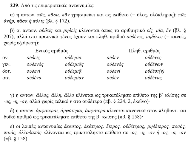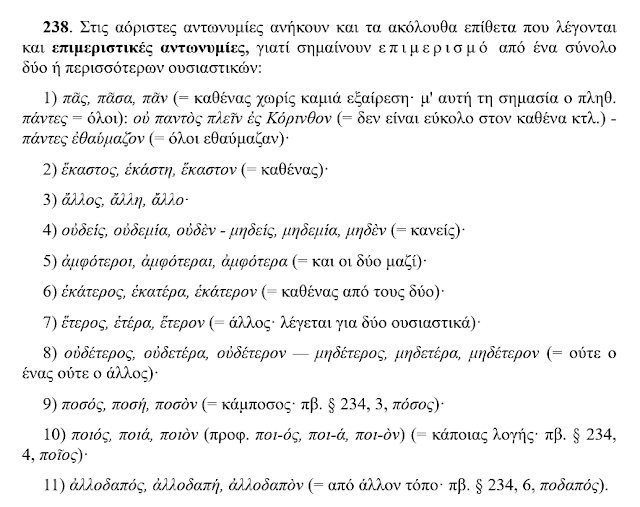 – Επίθετο, το οποίο λογίζεται ως αντωνυμία (αόριστη, επιμεριστική)