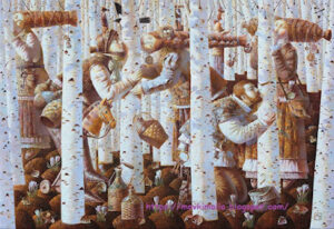 Kissing the Birch, Anna Berezovskaya Το δέντρο Επειδή ήταν πολύ αγαπημένοι ─όλη μέρα μπορούσαν να λέν’ σαχλαμάρες─ χωρίς να πέφτουν απ’ τα κλαριά του πανύψηλου εκείνου δέντρου, όπου είχαν ανεβεί για να ‘ναι μόνοι, ανάμεσα στους ωραίους καρπούς που ακίνητοι άκουγαν, με μιαν αμείωτη και συγκινημένη σοβαρότητα. Ύστερα έπαψαν ν’ αγαπιούνται, πιάσαν μιαν ατέλειωτη …