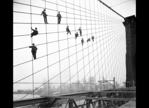 Οι ζωφράφοι της Γέφυρας του Μπρούκλιν ( Brooklyn Bridge showing painters on suspenders) -October 7, 1914. Φωτογράφος Eugene de Salignac Βλαντιμίρ Μαγιακόφσκι, «Η γέφυρα του Μπρούκλιν» Μπήξε μια φωνή από τη χαρά σου CΟΟLIDGE Για κάτι τέτοια εγώ μ’ όλη μου την καρδιά τα σπαταλάω τα λόγια. Κοκκινίσετε λοιπόν όμοια με της σημαίας μου …